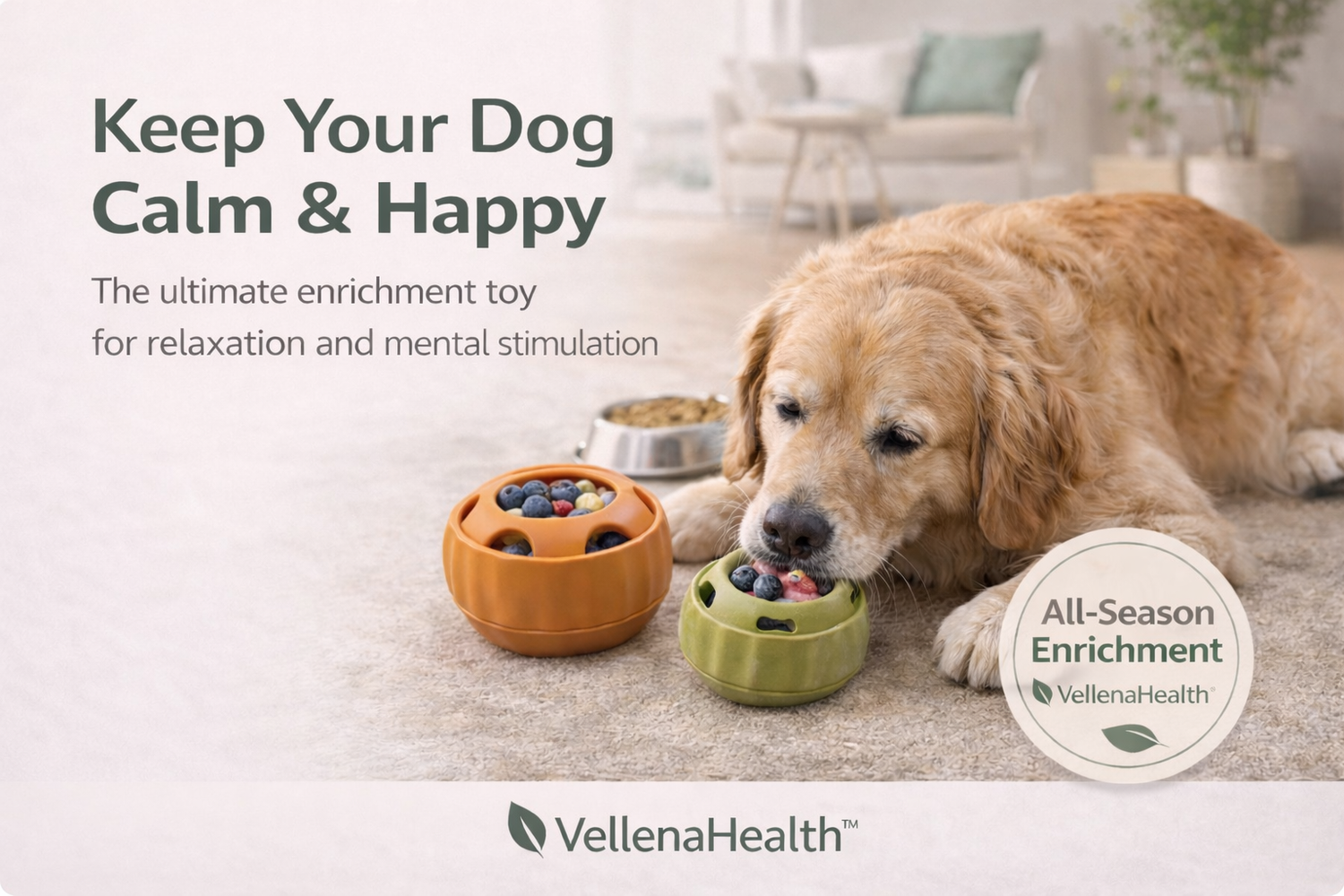 VellenaHealth™ enrichment toys are designed to keep dogs mentally engaged and peacefully occupied through slow, soothing licking. Simply fill with your dog’s favorite treats, freeze for longer-lasting enrichment, and let your dog relax.